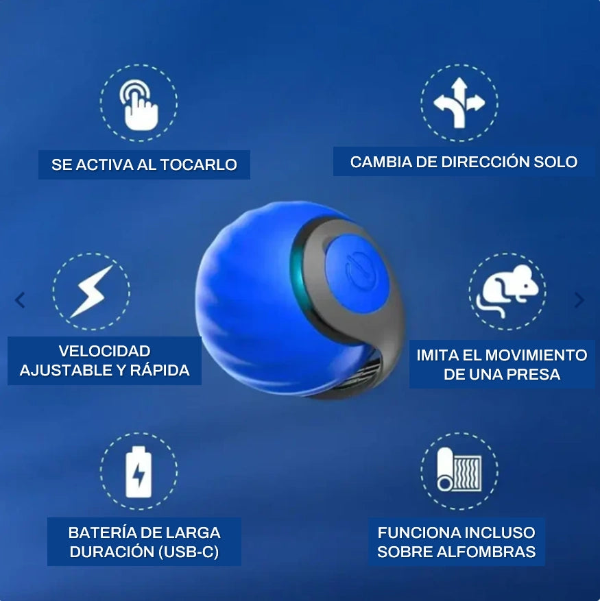 - Modo inteligente: mantén pulsado el botón hasta que la luz se vuelva azul. El juguete entra en reposo y se reactiva cuando tu gato lo toca.